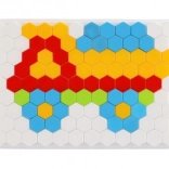 This creative mosaic is an ideal toy for developing children's imagination. It contains 127 colorful pieces that allow the creation of various shapes and patterns on a base inspired by honeycombs.