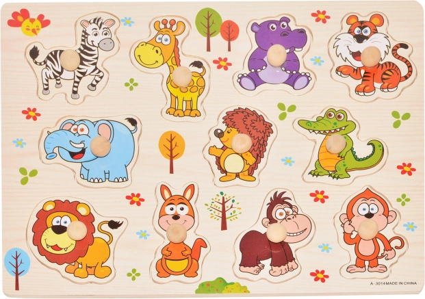 The wooden animal puzzle is an ideal toy for children's development, combining learning and fun. It allows children to improve motor skills by placing animal-shaped pieces in the correct spots.<\div>