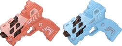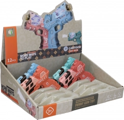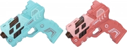 A fun kids' toy pistol measuring 12 cm offers light and sound effects and image projection for even more action. Available in 4 color variants (blue, green, orange, pink). Powered by 2× AAA batteries, which are not included.