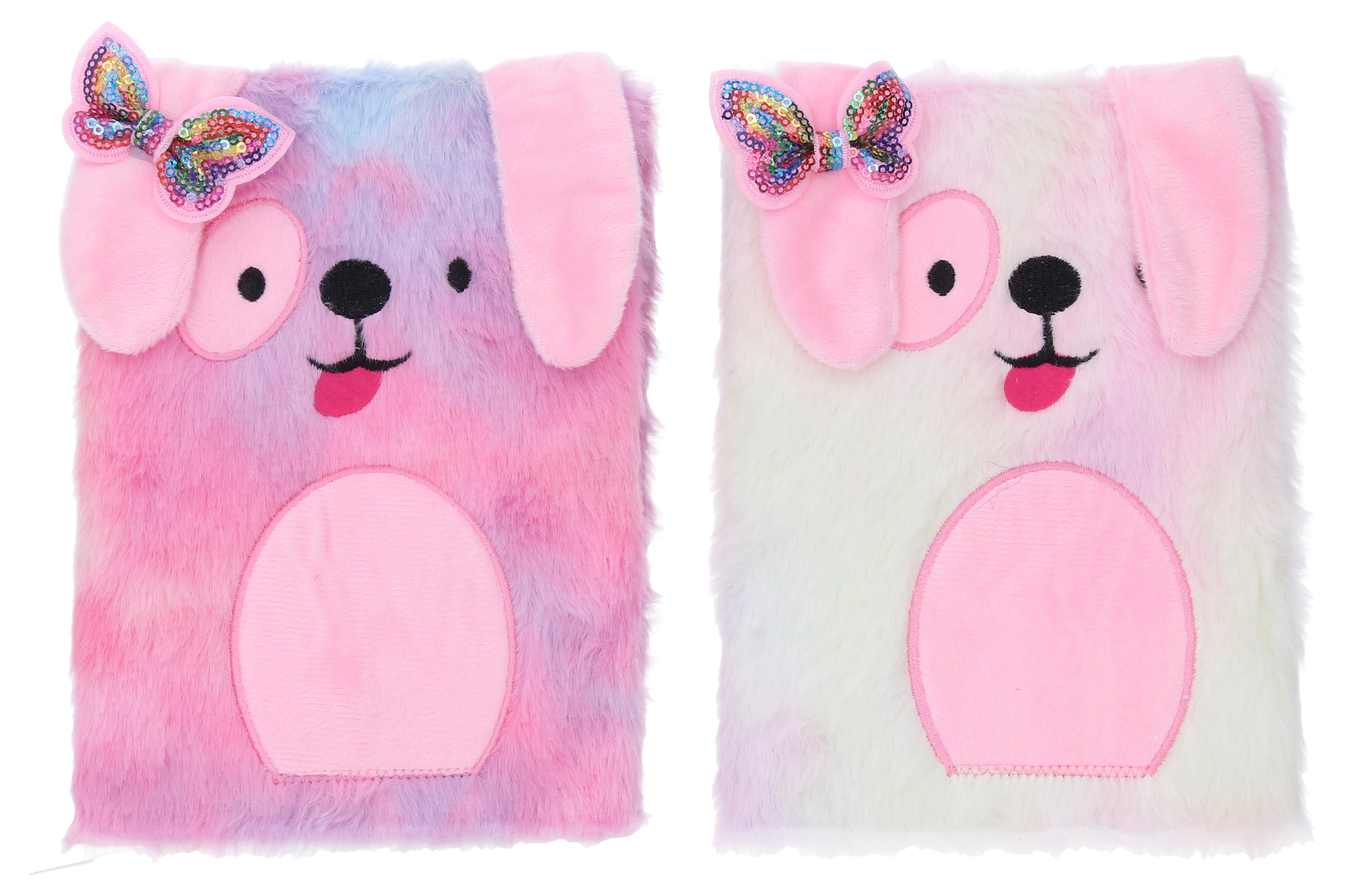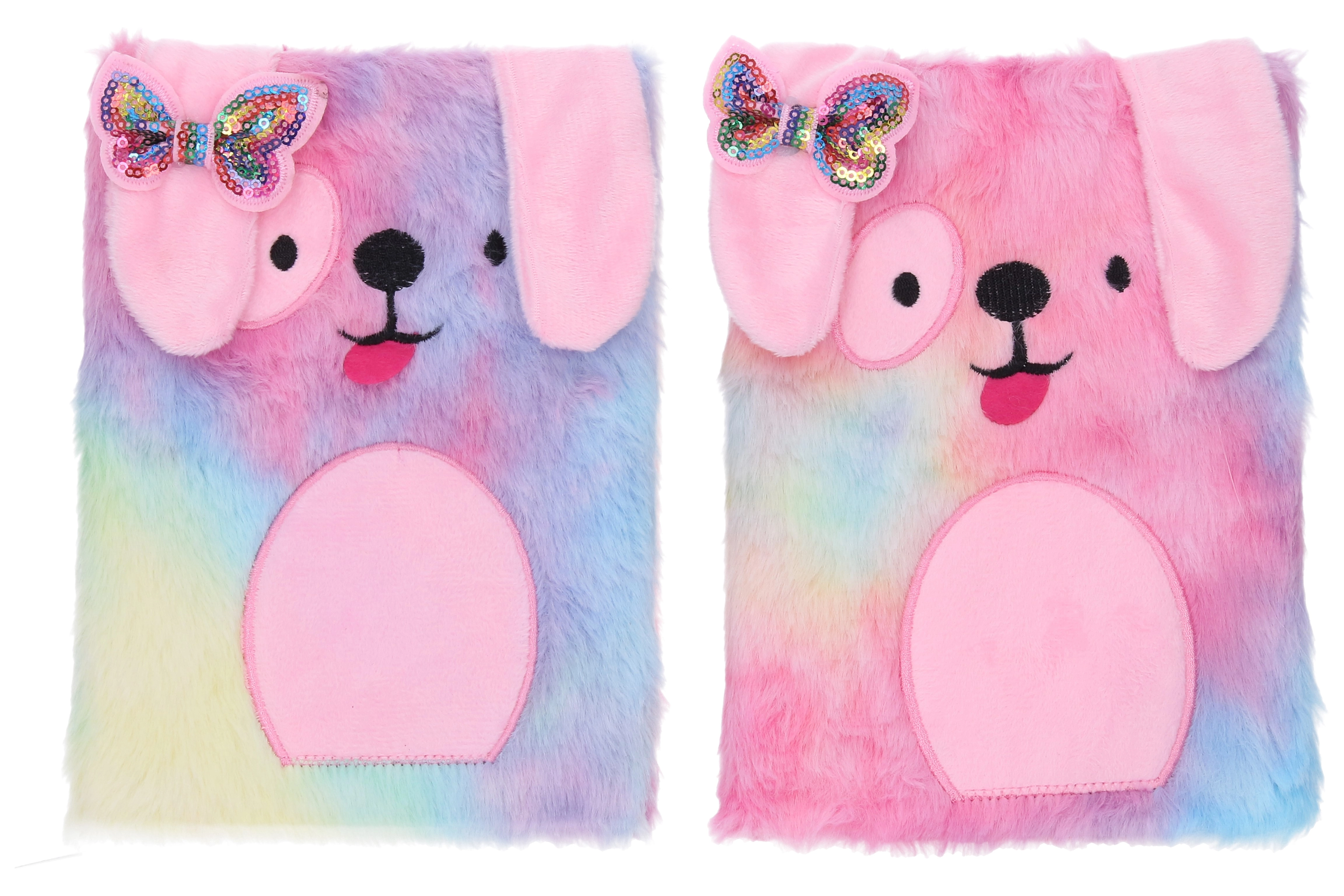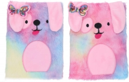 A cute plush diary with a puppy motif in a practical A5 format will delight both children and adults. It contains 80 lined sheets for jotting down ideas, secrets, and school notes. The pleasant soft plush cover protects the notebook and gives it an original look.
