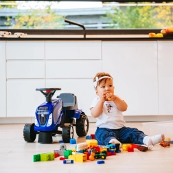 The NEW HOLLAND mini tractor for children from 12 months sparks imagination and movement. Thanks to its lightweight and durable plastic construction, it is easy to control and safe and stable for first riding experiences. The detachable trailer lets kids transport toys, blocks, and garden treasures.
