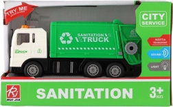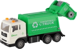 A stylish garbage truck for young drivers brings realistic fun thanks to the friction motor, flashing beacons, and sound effects. In 1:32 scale, it features an opening and tipping container, so kids can experience real garbage-collection work. AG13 batteries are included, so play can start right away.