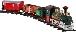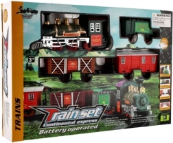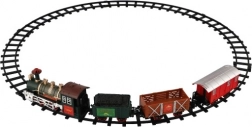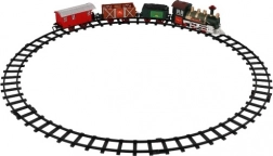 The package includes 8 pieces of track, allowing you to create a circuit of 107 cm. The track consists of 6 curves and 2 straight tracks. You need 2 x AA batteries for the locomotive (not included).