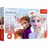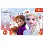 Puzzle featuring Enchanted World of Anna and Elsa from the movie Frozen 2 brings joy to all fans of this magical world. It consists of 60 pieces and after assembly forms a picture with dimensions of 330x220 mm.