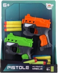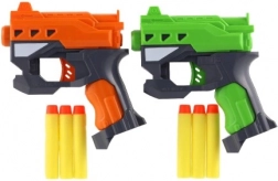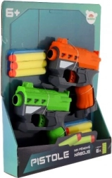 This set from Teddies delivers safe, action-packed play for kids and siblings. The soft foam darts insert easily into the barrel; just prime manually and aim. Thanks to the compact 12 cm size, the pistols fit comfortably even in smaller hands, and play can start within seconds.