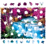 This wooden puzzle with a colorful waterfall stands out with vivid colors and precise craftsmanship. The pieces are laser-cut; some take the shape of animals and plants and can stand alone as small figurines. Assembling is fun and more challenging than standard jigsaws, offering a pleasant challenge for adults and skilled children.