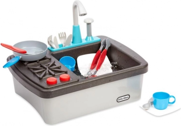 The LITTLE TIKES First Sink & Stove brings realistic kitchen fun right into the playroom. Thanks to running water with circulation, turning knobs, and rich accessories, it imitates real cooking and dishwashing. The compact, durable build is ideal for everyday play.