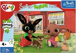 Fun BING-themed kids' puzzle with 60 XXL pieces featuring special Super Shape outlines, ideal for children aged 4+. Large, sturdy pieces are easy to grasp and assembling helps develop fine motor skills, focus, and visual perception.