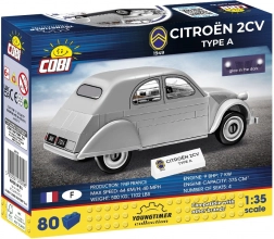 Dive into the history of motoring with this faithful replica of the Citroën 2CV Type A model from 1949. This COBI building set, consisting of 80 high-quality pieces, takes you into the world of classic cars at the modeling level of 1:35. Thanks to careful design and special pieces, the car closely resembles the original, including newly designed headlights. It also includes a plate with the model's signature and the Citroën logo. The car features 4 movable wheels and detailed prints of key elements.