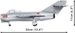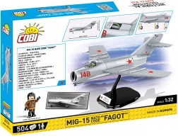 Build the legendary Soviet jet fighter MiG-15 FAGOT in 1:32 scale from 504 pieces. The model features an opening cockpit, rolling wheels, detailed prints with no stickers, and a display stand with a nameplate. Perfect for fans of aviation, militaria, and Korean War history.