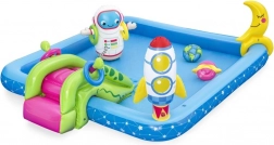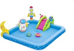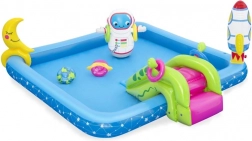 Inflatable Water Playground Galaxy BESTWAY provides endless hours of fun for children. This colorful pool set with a space theme includes fun features like a slide, sprinkler, and ring toss game, made from high-quality PVC material.
