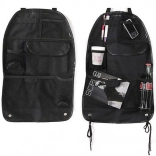 Practical car seat organizer designed to attach to the back of the car's front seat with many pockets for different items.