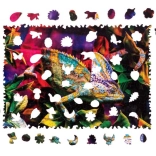 Discover the joy of puzzling with the Wooden Puzzle Amazing Chameleon. This 250-piece puzzle features uniquely shaped pieces, precise laser-cut craftsmanship with no splinters, and vibrant colors that will delight both kids and adults. Packed in a gift wooden box whose lid serves as a reference image.