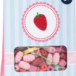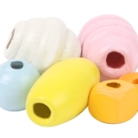 The Candy wooden beads are a great choice for first jewelry and small decorations. Thanks to the compact package size, they are easy to store and take anywhere. While threading, children practice hand–eye coordination, patience, and learning colors and shapes.