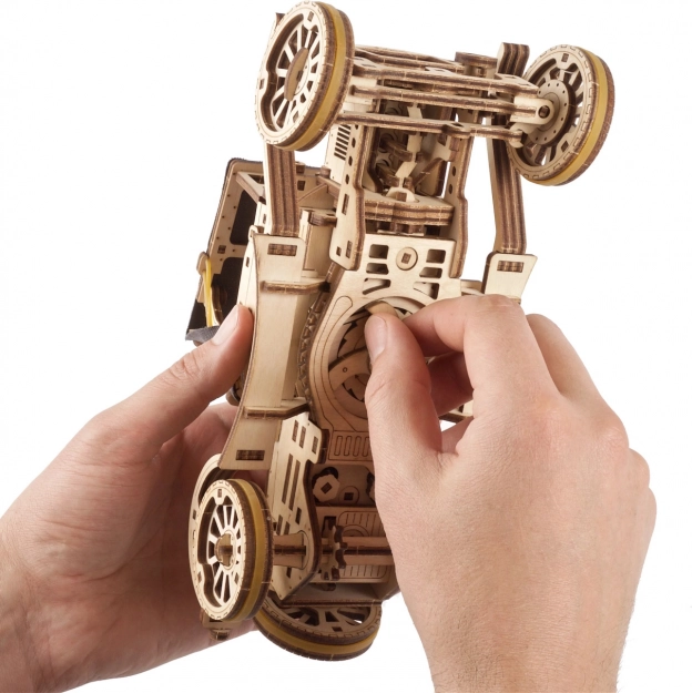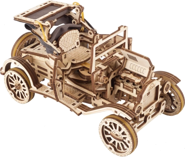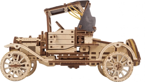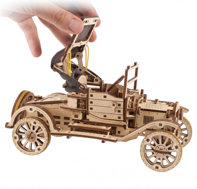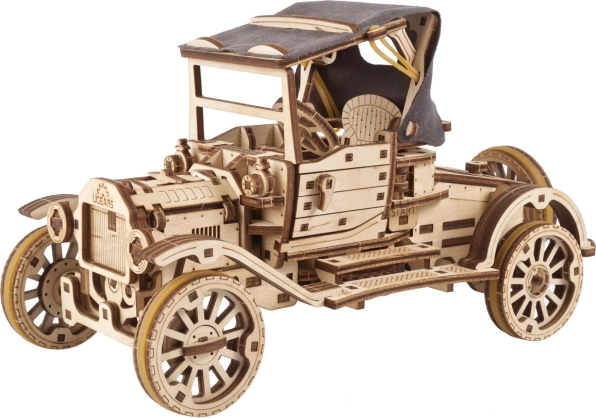Wooden model of a historical car by the brand UGEARS will captivate you with not only its precision but also its mechanical functionality. Powered by a metal spring, this model is fully steerable and offers a fascinating experience during assembly.