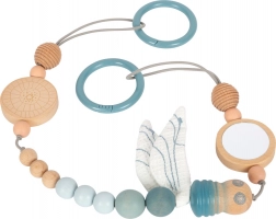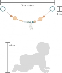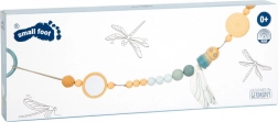 This designer SMALL FOOT stroller chain in a natural style stands out with a mix of wooden beads in various sizes, soft pastel shades, and textile elements. Thanks to the elastic cord, it adapts to different stroller types and handles, and the snap points on the attachment rings keep it securely in place. The fabric dragonfly with crinkly wings supports babies’ sensory perception and fine motor skills.