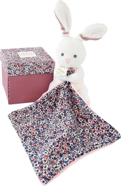 A cute gift set for newborns featuring a plush bunny and a soft blanket that provide comfort, soothing, and a sense of security from birth. Ultra-soft materials with a fresh cotton print stimulate the senses and curiosity. The set comes in an elegant gift box and meets European CE standards.