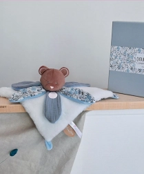 An adorable teddy comforter made for a baby’s first cuddles. It offers ultra-soft, soothing material, premium craftsmanship, and a compact size for newborns. Thanks to the fresh cotton print, it stimulates the senses and curiosity. Includes an elegant gift box, making it an ideal present from birth.