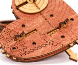 Precise engraving, geared elements, and a layered construction make this puzzle both a stylish accessory and a durable gift box.