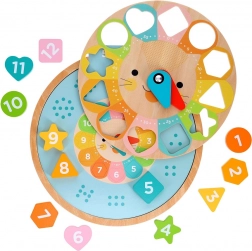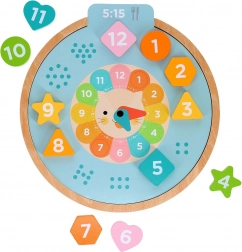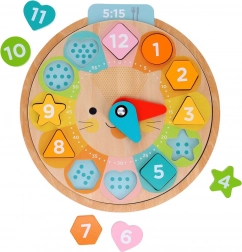 Features movable hands and shapes that children can place in the correct spots, which stimulates coordination and fine motor skills.