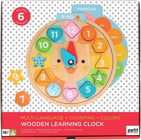 With this clock, children learn time in six different languages, enhancing their language skills.