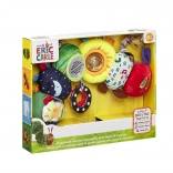 The beloved character from the tale The Very Hungry Caterpillar comes to life as a colorful textile activity plush that stimulates the senses, supports early development, and trains fine motor skills. The caterpillar twists, rattles, and plays the lullaby “Twinkle, Twinkle, Little Star.” Thanks to various textures, a mirror, tags, and a clip-on ring, it entertains baby at home and on the go.