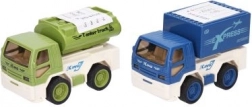 This truck is powered by inertia, meaning it drives on its own after being wound up. Available in two variants: tanker and garbage truck. It features high-quality craftsmanship and details that captivate every child.
