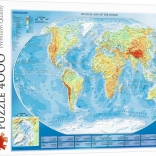 Explore the world with a detailed 4,000-piece puzzle featuring a current physical world map. Perfect as an educational tool and a stylish decoration for a kid’s room or home office. Once completed, the image measures 136 × 96 cm. High-quality calendered paper with a anti-glare finish and eco-friendly inks ensures rich colors and safe assembling.