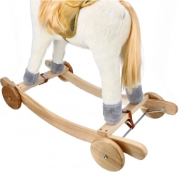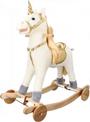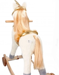 This magical golden unicorn on a swing with wheels combines play and imagination with a safe and stable construction. Children will enjoy hours of fun on this beautiful swing with wooden rockers and soft plush.