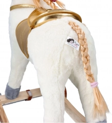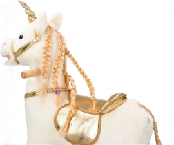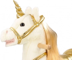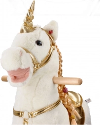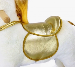 Discover the thrill of riding this beautiful golden unicorn. With soft and pleasant plush, it offers a comfortable and entertaining experience for your children. Stable wooden construction and elegant gilded elements bring a magical atmosphere to every playtime.