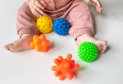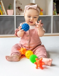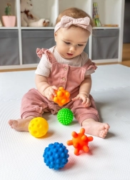 Colorful sensoric balls encourage children's motor skills through various textures and colors.