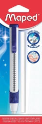 The practical MAPED Gom Pen erasable pen is ideal for school, the office, and home. It features a comfortable triangular shape and a push-out eraser triggered by the clip. The package includes a pen with eraser and a replacement eraser. Its compact size and reliable erasing will be appreciated by anyone who needs quick and precise corrections.