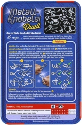 This SCHMIDT Metall-Knobelei Duell set brings twelve cleverly designed metal puzzles in a practical tin box. Each piece tests your patience, logic, and fine motor skills: first separate the two parts without force, then return them to their original shape. Thanks to the included illustrated instructions, you can peek for hints at any time.