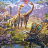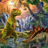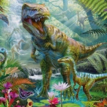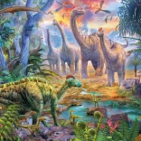Each puzzle offers a different scene from the prehistoric world, depicting various types of dinosaurs in detailed illustrations.