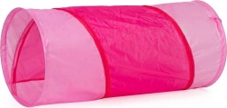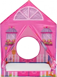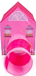 Tente pour enfants avec tunnel au motif de petite maison rose.