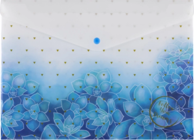 Pochette pratique pour documents au format A4 avec imprimé attrayant et fermeture fiable à bouton-pression. Offre un transport et un stockage sécurisés des documents, fabriquée dans un matériau robuste d’une épaisseur de 200 microns et livrée en assortiment de motifs. Idéale pour l’école, le bureau et les déplacements.