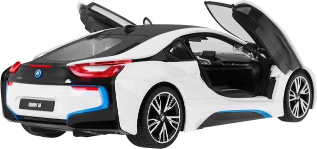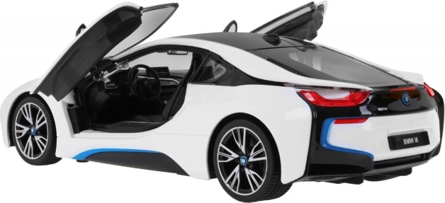 En appuyant sur un bouton de la télécommande, les portes emblématiques de la BMW i8 s’ouvrent – un effet impressionnant pour jouer ou exposer le modèle.
