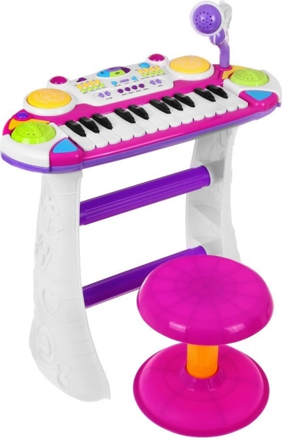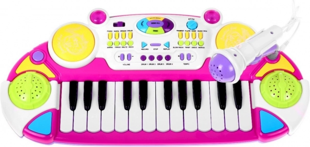 Cet ensemble rose clavier avec tambours et microphone est un cadeau idéal pour les enfants à partir de 3 ans. Il comprend deux octaves, des lumières et des sons, offrant aux enfants une expérience musicale et ludique inoubliable.