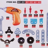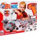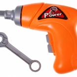 Le kit inclut un tournevis électrique en plastique et une clé anglaise, permettant aux enfants d'activer leurs créations mécaniques.