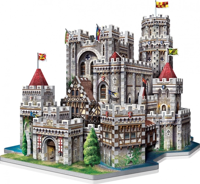 Les tours, créneaux et drapeaux se distinguent par une texture de pierre soignée. Le modèle final est une décoration attrayante et un support pédagogique pour les passionnés d’histoire.