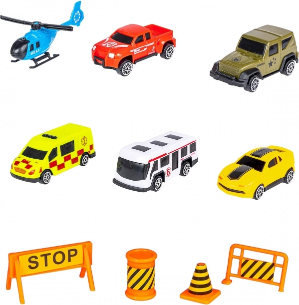 - Inclus : 5 petites voitures et un hélicoptère.