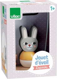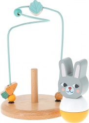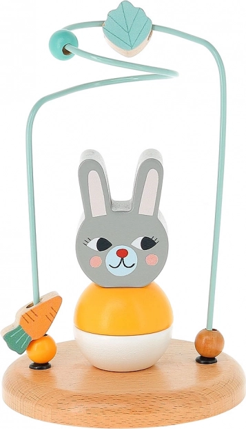Ce labyrinthe en bois avec parcours métallique et figurine de lapin propose une activité ludique où les enfants font avancer des perles et des formes (carotte, feuille) sur une trajectoire ondulée. Le jouet favorise le développement de la motricité fine, la concentration et la patience, tout en restant sûr et stable grâce à sa base en bois solide.