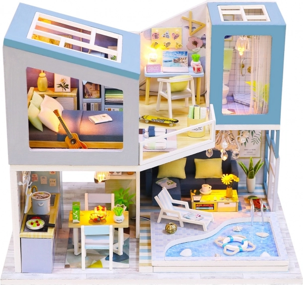 Nous vous présentons un superbe kit de construction de maison miniature, la Villa de la première rencontre. Ce kit unique offre des heures de divertissement lors du montage, du collage et des finitions, aboutissant à un magnifique modèle qui deviendra une décoration originale pour votre intérieur. Chaque kit est livré en pièces détachées avec un éclairage LED, qui confère à votre villa miniature une touche réaliste. L’emballage comprend tous les composants nécessaires ainsi que des outils pratiques comme de la colle, une règle et une pince pour un assemblage facile.