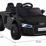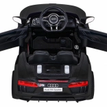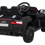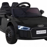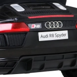 Petit conducteur, grand bonheur. La voiture électrique AUDI R8 Spyder en élégant noir offre l’allure d’une véritable sportive, une prise en main simple et un fonctionnement sûr. Grâce à ses deux moteurs de 35 W et à son démarrage progressif, la conduite est confortable et stable, tandis que la suspension avant et arrière absorbe les irrégularités.