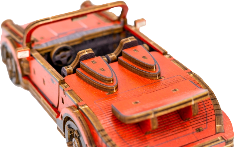 Un kit mécanique en bois de la voiture de sport la plus incroyable vous attend ! Grâce au design unique et aux détails surprenants de ce modèle, votre temps de jeu sera plein de divertissement et d’émotions fortes. Vous pouvez utiliser la direction des roues avant. La voiture, avec son mécanisme à inertie, peut parcourir jusqu’à 1 mètre. Caractéristiques de la voiture de sport : - moteur entraîné par courroie élastique, - roues avant orientables, - éléments colorés marquants grâce à l’impression UV de haute précision, - boîte en bois servant de socle, - édition de collection. Le puzzle 3D WOODEN CITY Sport Car sera le meilleur cadeau pour tout amateur de voitures de sport.