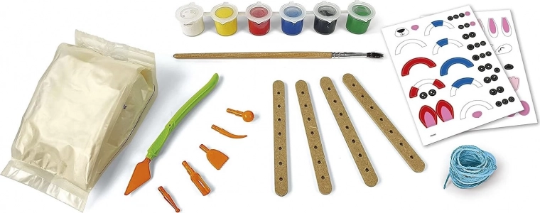 Le set est idéal pour créer en famille. Il apprend les bases du modelage et de la peinture, développe la patience et propose de nombreuses activités créatives, du porte-crayons au capteur de rêves jusqu’au moulin à vent en papier décoré de graines.