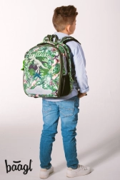 Le cartable scolaire Baagl Dinosaures est conçu avec un corps robuste et renforcé qui protège les fournitures scolaires comme une carapace protectrice. Le système à deux compartiments assure une répartition optimale de la charge, où le compartiment avant contient un organiseur pratique, une poche pour petits objets et un mousqueton pour les clés.