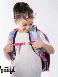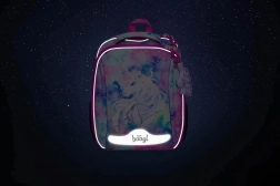 Le cartable scolaire Baagl Shelly Licorne se distingue par un corps renforcé, qui protège le contenu comme une carapace. Grâce au système à deux compartiments, la charge est répartie uniformément, tandis que le compartiment avant comprend un organiseur pratique avec une petite poche pour les accessoires et un mousqueton pour les clés.