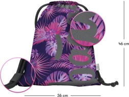 Le sac présente un motif tropical attrayant dans des tons roses et violets qui attire le regard.