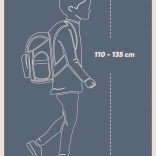 Le système dorsal AIR ERGO ADJUSTABLE SYSTEM, avec dos ergonomique et bretelles d’épaules et de poitrine réglables, évolue avec l’enfant et garantit un port sain et confortable.